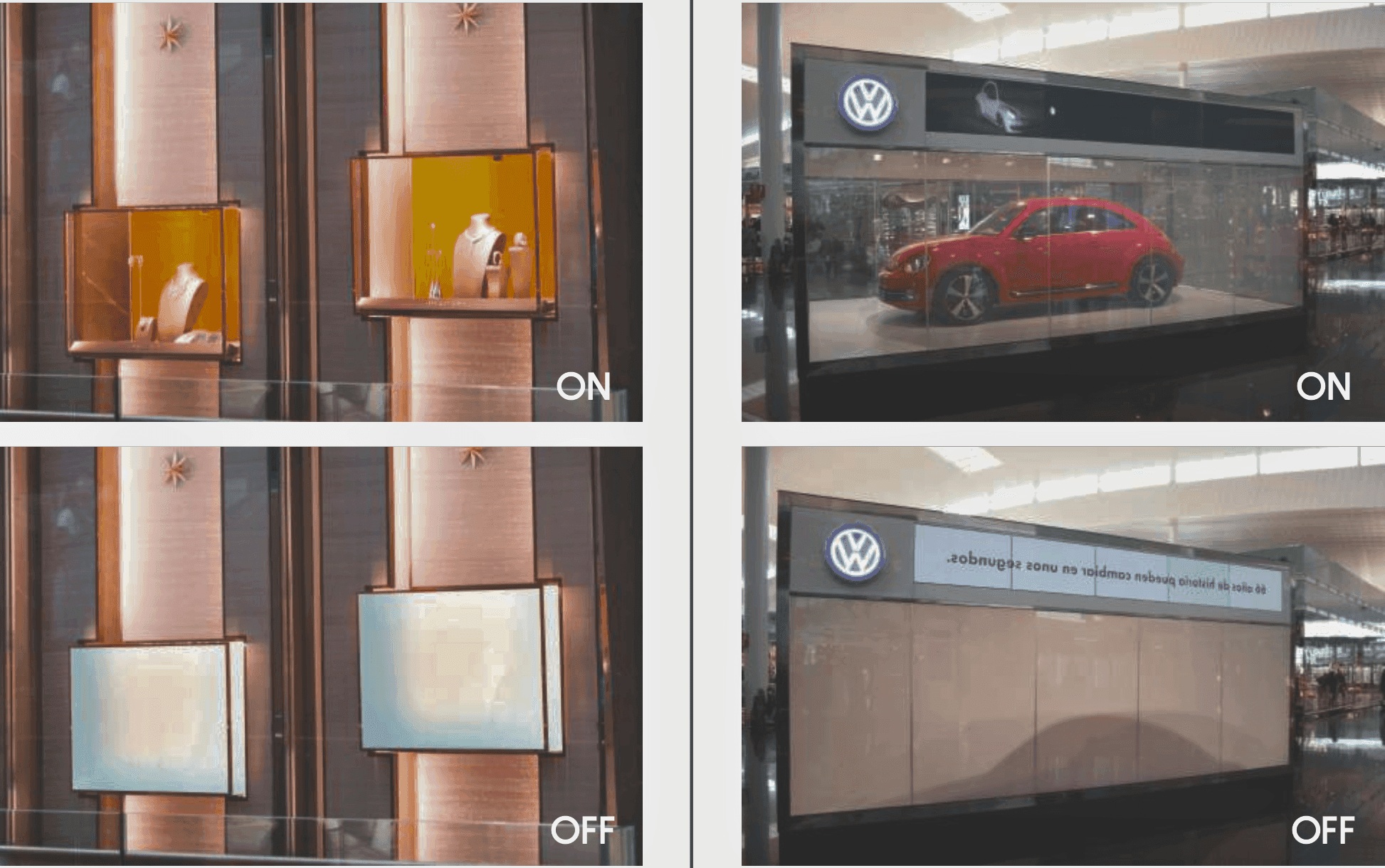 Folia inteligentă comutabilă este o soluție ideală pentru magazinele și brandurile ce doresc să se diferențieze de concurență și care doresc să ofere o experiență de shopping deosebită și interactivă clienților săi. Una dintre cele mai importante caracteristici ale acesteia este posibilitatea de a schimba vitrinele transparente într-un spațiu opac, oferind astfel un suport de marketing inovator și atractiv.